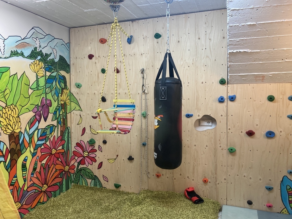 Climbing wall in the garage for the kids.