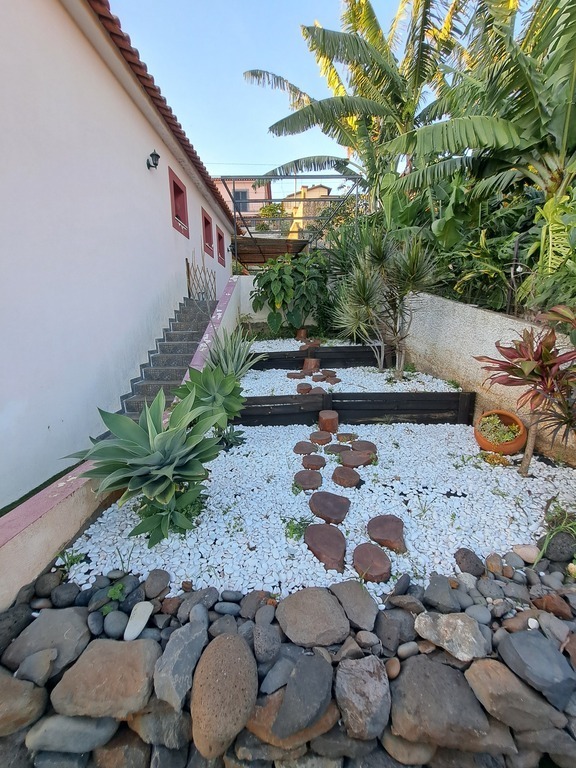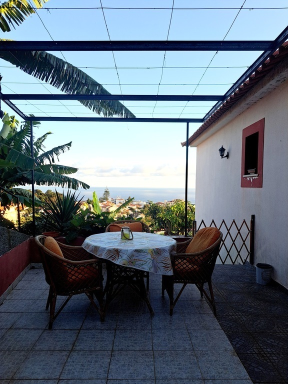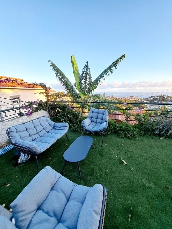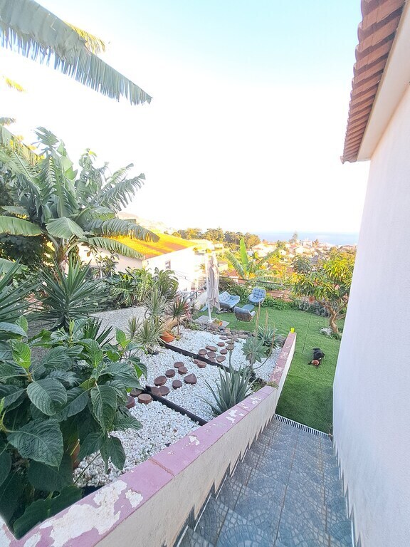 A casa é acolhedora e rodeada por um amplo jardim, proporcionando um ambiente tranquilo e harmonioso. Daqui, pode-se desfrutar de uma vista deslumbrante e sem obstáculos para o mar. Apesar de estar a apenas cinco minutos do centro do Funchal, a localização é serena, permitindo ouvir o canto dos pássaros. O jardim está repleto de flores coloridas e árvores de fruto, garantindo uma abundância de bananas. Além disso, a casa conta com uma garagem para maior comodidade no estacionamento.