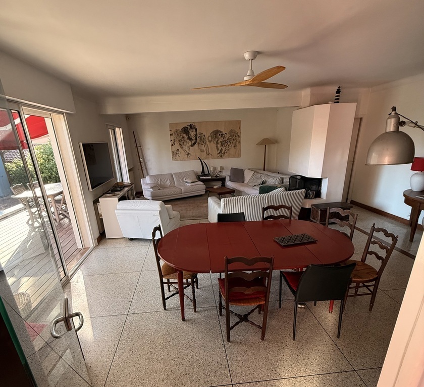 • Rez-de-chaussée : vaste séjour avec cheminée ouvrant sur une grande terrasse plein sud, cuisine conviviale, chambre avec salle de bain, climatisée et bureau.
