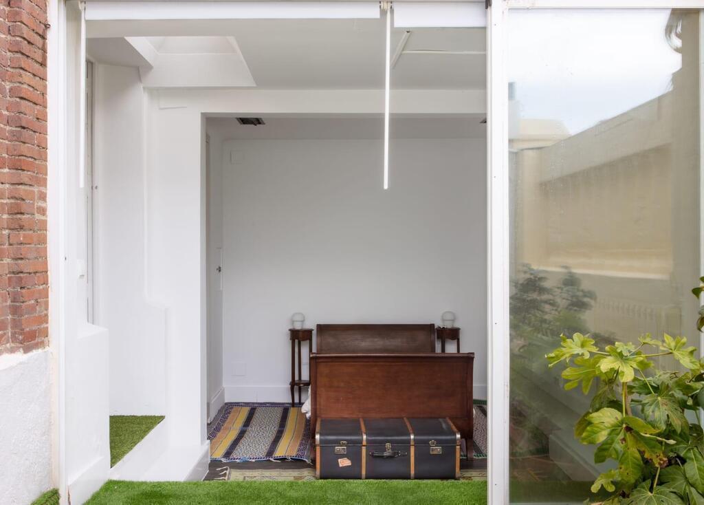 Se trata de un loft en uno de los edificios más emblemáticos de Madrid, el palacio de la prensa, en un 10 piso. Tiene enormes ventanales sobre la ciudad y una terraza privada para estar al