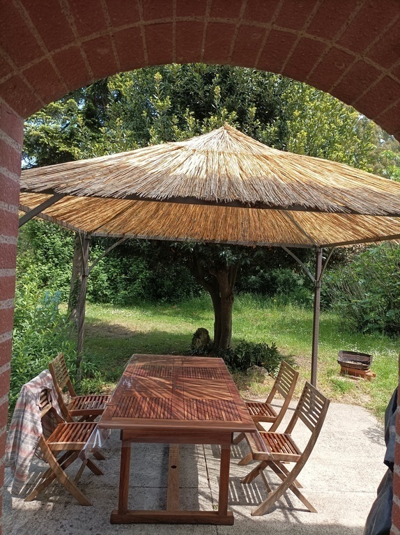 Grand jardin arboré et fleuri.. Petit lac abritant un biotop ( grenouille, poules d'eau, canards, libellules) avec coin grillades.